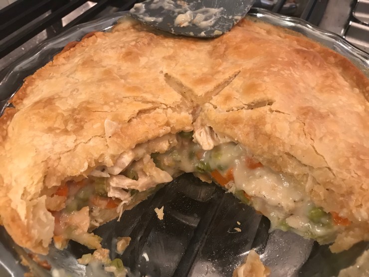 This was such an easy dinner. I thought I was being adventurous by making this for dinner on an average Thursday night. However, this chicken pot pie came together quickly and in only one pot and one pan. Less dishes is always a win in my recipe book!