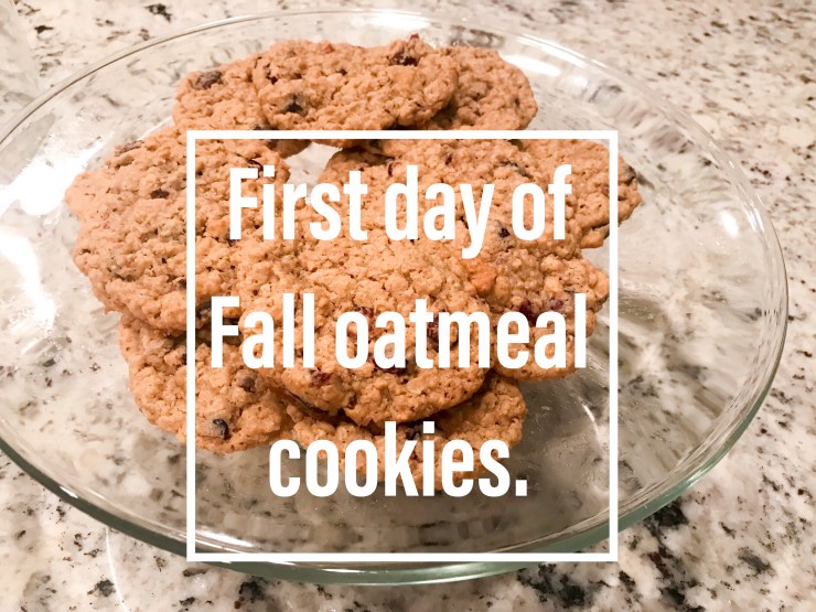 We ate these as they came out of the oven. Perfect to welcome the first day of Fall. I used craisins instead of raisins and they were absolutely perfect. Perfect chewy, perfect spice, just perfect.