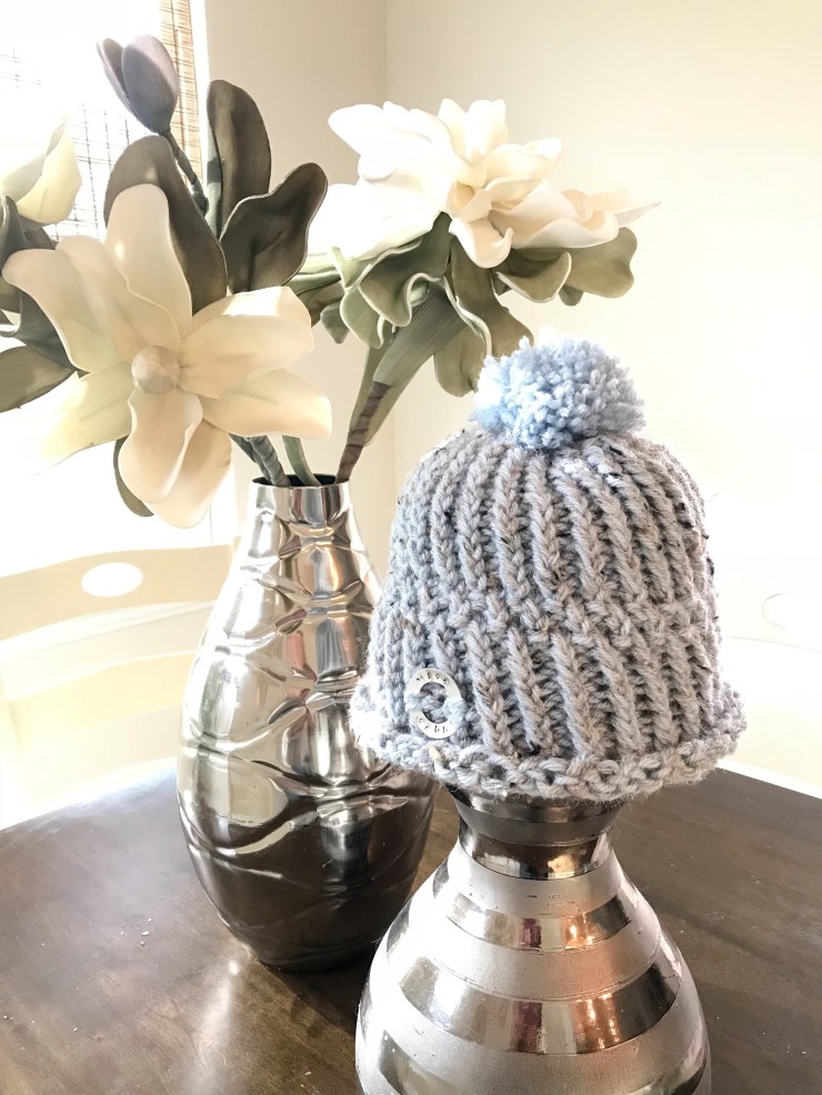 I use the impressart collection to personalize the ring. Really easy! It just takes a few minutes to stamp the letters into the metal and it adds such a great finishing touch. I stamped this first ring (on the baby blue hat) on my coffee table and it created a ripple in the lettering. I now stamp on a piece of granite as my base and the ring sits much more flat (in the black and white photo of my guy).